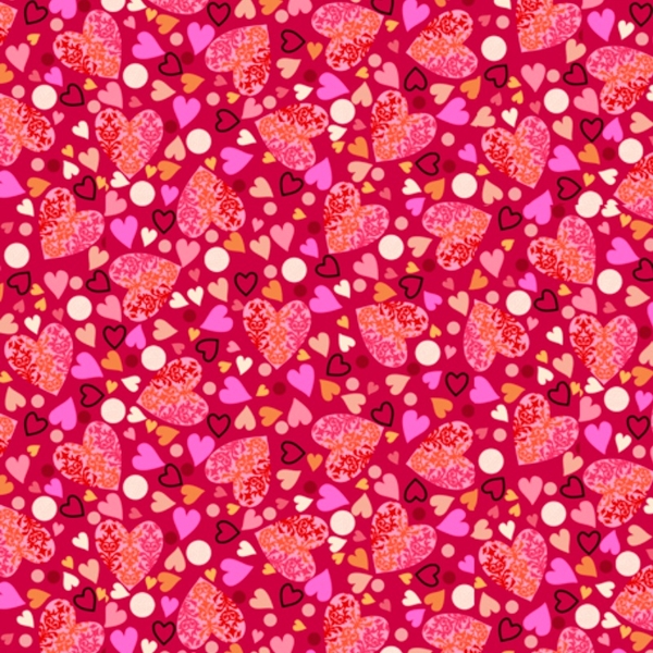 Quilting Treasures All My Love Packed Hearts on Red Fabric.