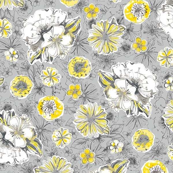 Quilting Treasures Alyssa Tossed Floral on Grey Fabric.