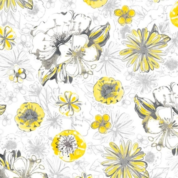 Dimensions: Width 43/44 inches.Composition: 100% Cotton.Colours: Grey / White / Yellow.Care Instructions: Machine wash cold. Normal cycle with like colours. Use non-chlorine bleach when needed. Tumble dry medium. Remove promtly. Use warm iron.