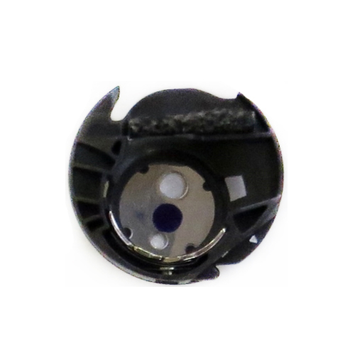 This bobbin case holds the threaded bobbin safely in the lower part of the sewing machine.