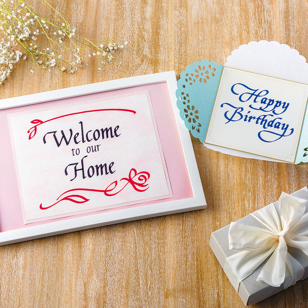 By installing the specially designed calligraphy pen into your cutting machine, you can draw beautiful text and patterns on various materials.