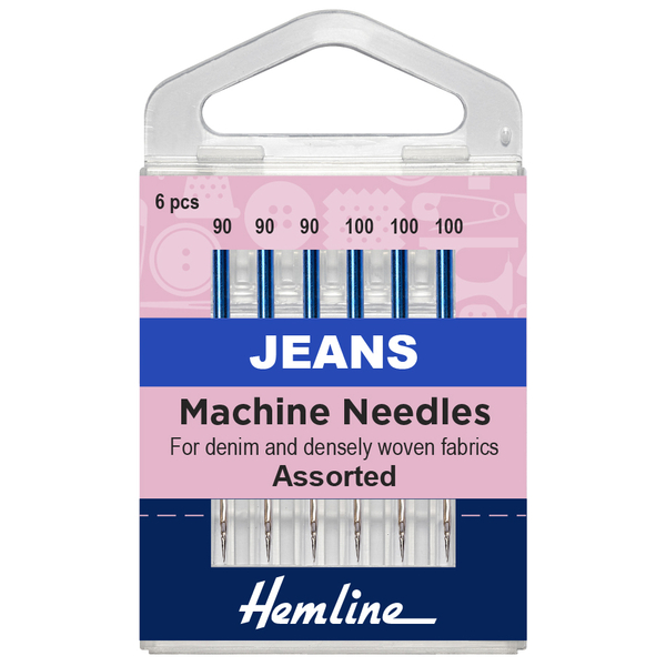 Ideally suited for denim fabrics, heavy twill, workwear and densely woven fabrics such as canvas and heavy linens. Very sharp point and a stiffer shank resists deflection to sew a straight stitch on thicker fabric. Sizes: 3 x 90/14, 2 x 100/16.