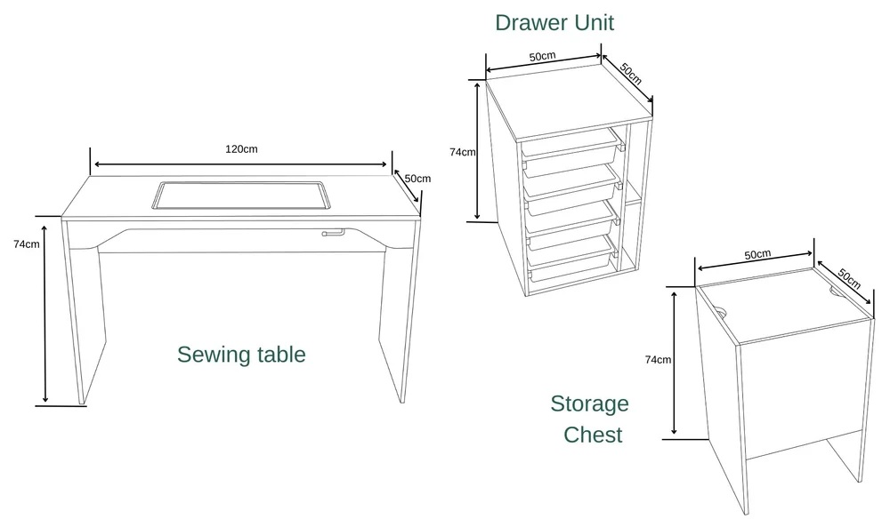 The ‘Elements’ clever design allows for many different configurations to fit in with your room. Fitted with our maxi aperture/ opening giving it the ability to fit even the largest domestic products. Like our Sewers Vision the Elements table (Model 201) is fitted with a 2-position manual mechanism platform which allows either a flatbed or free-arm sewing position. Each position can be reached by using a quick release adjustment lever. To get the most out of the flatbed position you can purchase a separate flatbed inset (part number- 1942) which can be cut to fit your particular brand and model of product. Great value.