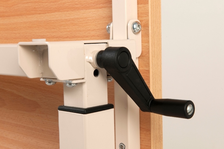Tilts for storage by means of a pull release catch mechanism to give back valuable floor space to your room.