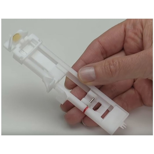 The Sliding Buttonhole Foot is a plastic foot suitable for making buttonholes. By placing your button on top of the foot the machine will sew a perfect buttonhole for you exactly the correct size!