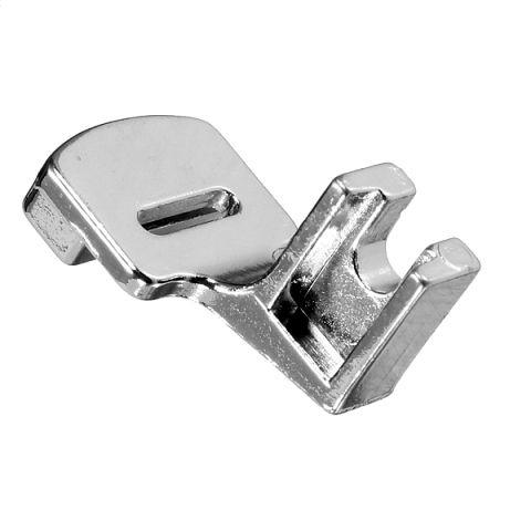 4. Slide the fabric not to be gathered into the slit in the presser foot with the surface of the fabric facing down.