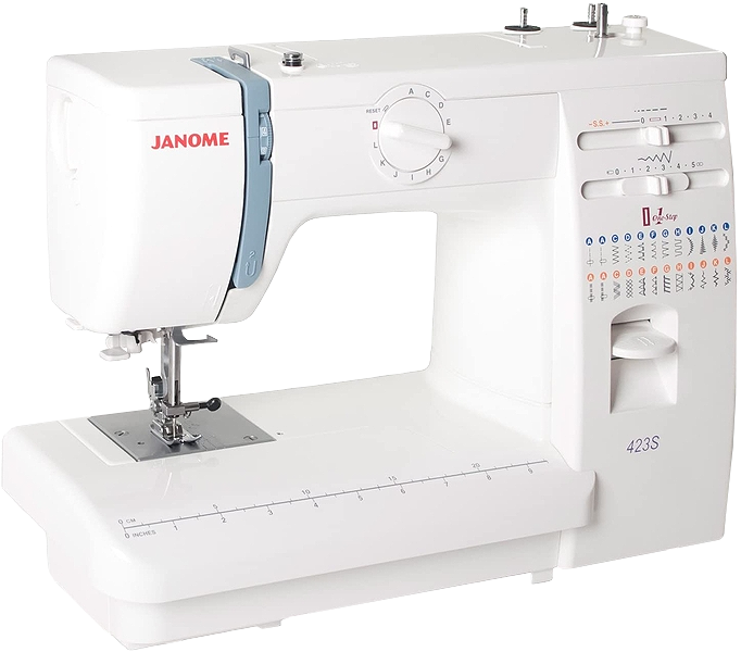 Janome 423S sewing machine is ideal for experienced sewers. With a sturdy, all aluminium body the machine will have no problems sewing a huge range of fabrics, anything from fine cottons, silks, stretchy lycra to thick fabrics.