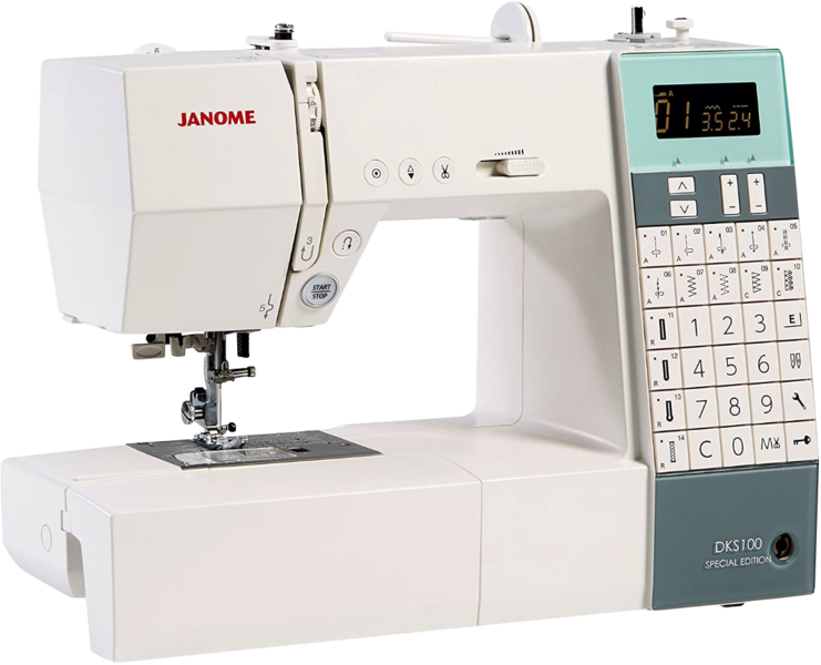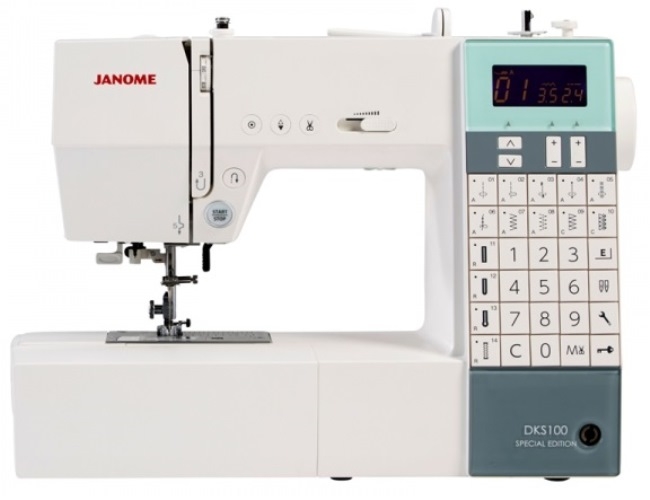 The Janome DKS100 Sewing Machine is a really easy to use, fully computerised sewing machine and yet it is packed with so many powerful features. The Janome DKS100 will make sewing both simple and enjoyable with its extensive range of 100 built in stitches, which includes three one-step buttonhole options.
