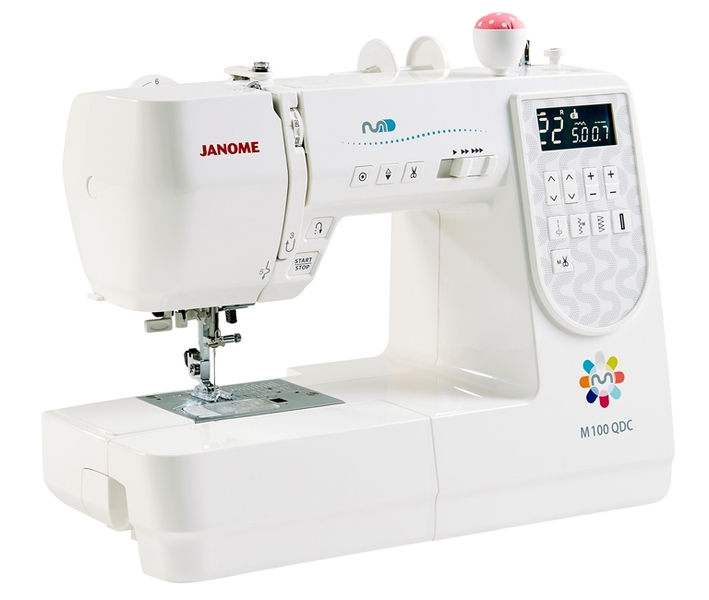 The Janome M100 QDC Computerised sewing and quilting machine which is ideal for beginner and experienced sewers alike, offering maximum creativity. The M100QDC provides more features than other mid-range machines, such as the Auto Thread Cutter (scissors button), it's also more powerful with 820 stitches per minute, more creativity with 100 stitches and 7 buttonhole styles, plus several accessories. Plenty of features with the Janome M100QDC, such as the bright LCD Screen, which displays the presser foot, stitch selection, stitch width & length.