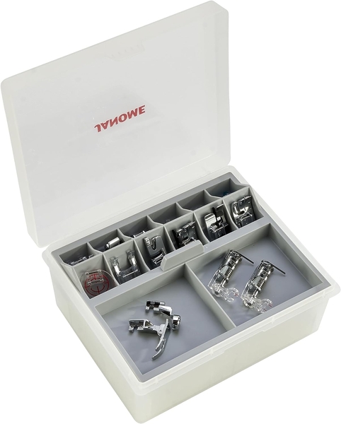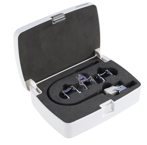 In harmony with JANOME's Professional Series design aesthetics, this elegant new model showcases a spacious 280mm workspace, an extension table, a 9mm stitch width, and a vibrant HD colour screen. This is complemented by time-saving Sewing Application enhancements and user-friendly features.