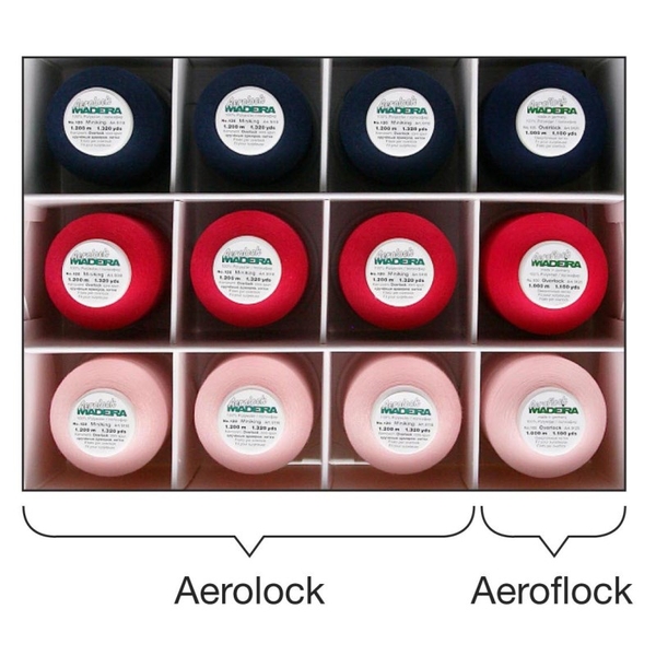 Box contains 3 colours: Aerolock and the colour-matched bulk thread Aeroflock. You can create perfect, colour-matched coverlock and overlock seams with the provided 3 miniking spools Aerolock and 1 Aeroflock. Aerolock is a high-quality overlock thread for long-lasting seams and Aeroflock is a voluminous and fluffy overlock thread suited for elastic requirements such as lingerie, sportswear, and swimwear.